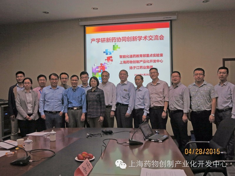 4月28日,由复旦大学上海药物创制产业化开发中心、复旦大学智能化递药教育部重点实验室、扬子江药业集团有限公司共同主办的产学研新药协同创新学术交流会在复旦大学张江校区召开。扬子江药业集团有限公司的总经理助理路显锋、沙琦,扬子江旗下子公司总经理以及新药研究院、药物制剂新技术国家重点实验室代表,复旦大学药学院党委书记陆伟跃、副院长王建新,以及智能化递药教育部重点实验室骨干科研教师,上海药物创制产业化开发中心邵黎明主任等中心执行管理团队共20余人参加了会议。